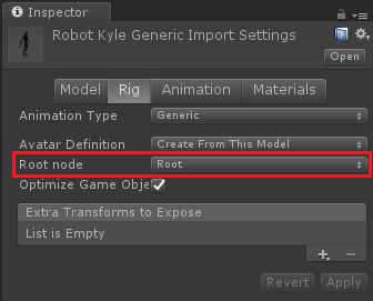 Click on "Done" to close the humanoid avatar configurator. Then select your generic model in Unity's project window and configure the exact same bone that was set as "hips" bone on the humanoid character as "Root Node":